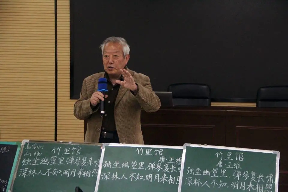 第二阶段于24日下午进行。参赛者按照比赛要求,将参赛诗句誊写在黑板和稿纸上。撰写完毕后由党委副书记朱鑫铨老师,学院季新华老师,关工委班吉庆老师,倪建平老师担任评委老师,依据作品书写布局以及书写规范两部分进行综合评分,筛选出优秀范本并在院内展示。