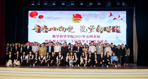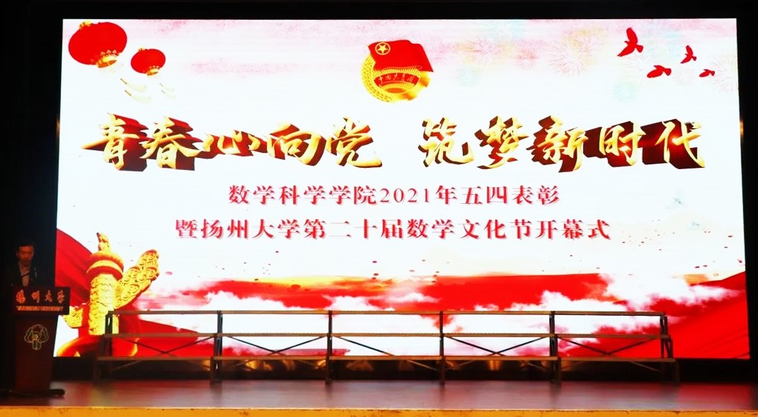5月12日下午,我院于文汇路校区大礼堂举办“青春心向党,筑梦新时代”2021年五四表彰暨第二十届数学文化节开幕式、“红音传响,献礼百年”庆祝中国共产党成立100周年合唱汇演。校学工部(处)长徐蕾老师、保卫部(人武部)长姚永明老师等相关部门领导以及学院全体领导、师生参加活动。