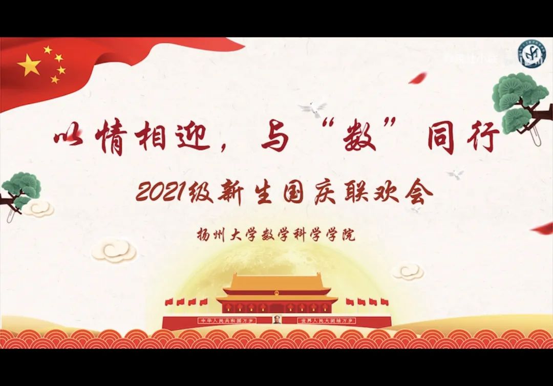 为庆祝祖国华诞,展现新生风采,激励学生不负韶华扬帆起航,10月3日晚19:00,我院于线上以录播形式开展“以情相迎,与‘数’同行”2021级新生国庆联欢会。本次晚会由我院社团联合会主办,学生会与新闻中心协办,我院全体师生参与。