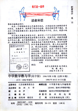 ③ 南京大学新闻系钱俊(高考数学满分) 见封底1996.10