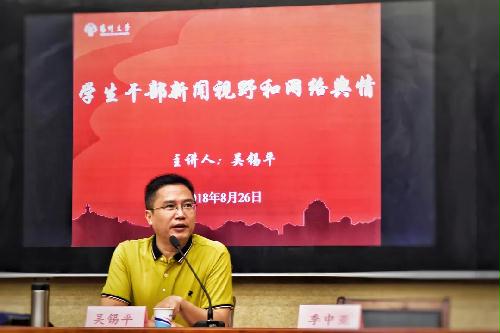 为进一步安排好学生工作、提升学生干部的素质与能力,数科院召开2018年数学科学学院“青马工程”学生干部培训班开班仪式暨新学期学生干部大会,学院党委副书记朱鑫铨老师、团委季中亚老师、陈永生老师出席会议,学院学生会、社团联合会、新闻中心等学生组织的学生干部听取会议。