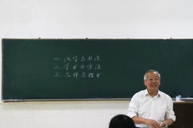 首先,班老师给学生们介绍了汉字与书法的含义。汉字,即是记录汉语的字;而书法,从狭义上讲是指用毛笔书写汉字的方法和规律,但从广义上讲,书法便是汉字的书写法则。接着,班教授给大家讲述写好书法的方法。学习前人的书法时,观察务求精细,摹拟务求相像,学习书法不能满足于局限的了解,深钻下去掌握其规律更为可贵。对前人的东西,学一部分,抛开一部分,不必全部去学。要有选择性地学习,并且加入自己的体会与构思,理解和想象。