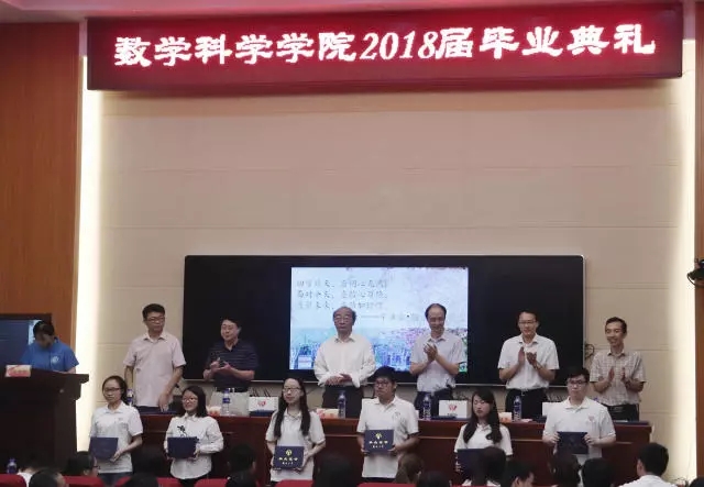 “莫失坚苦赤子心,莫忘春风化雨情”,6月22日,数学科学学院隆重举办2018届毕业典礼,院长李刚老师、院党委副书记朱鑫铨老师、副院长凌智老师、副院长周建华老师、教师代表魏俊潮老师以及全体班主任和辅导员老师出席典礼。