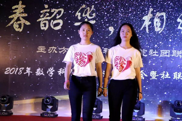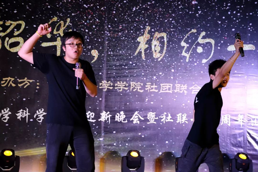 互动过后, 数学1704班沈逸豪、倪威同学带来了相声《我爱羽毛球》。搞怪的动作,风趣的语言,他们让现场再次成为欢乐的海洋。