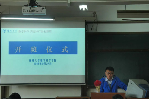2018年9月27日,扬州大学数学科学学院举办了2017级创新班开班仪式。学院党委副书记朱鑫铨老师、副院长凌智老师、学业导师黄强联老师、团委副书记季中亚老师、班主任郝如健老师出席了本次开班仪式。
