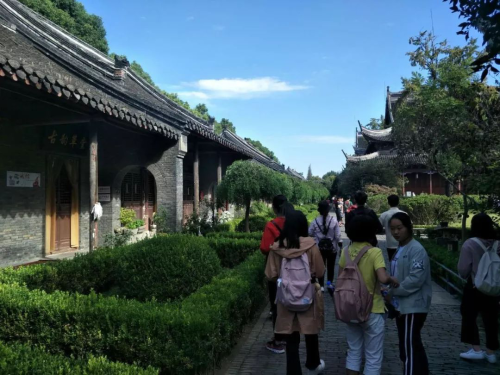 在晨曦之中,众人乘车来到中国大运河遗产点天宁寺行宫。踏进青石古板,伴着悠扬的扬州清曲,学生们参观了扬州八怪画集、四库全书及慧日道场,在墨香松香中领略传统文化及佛道思想。