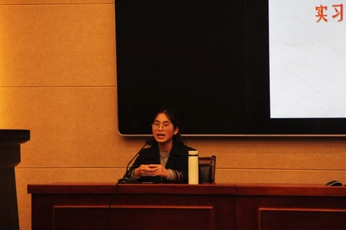 数学1502班的申明同学则与同学们分享了她在初中实习的经历。她以自己所上的三节校本课程为例,强调了实习教师的自我定位:“我不是实习老师、我就是一名真正的人民教师”,强调了树立教师威信与自信的重要。在学科教学方面,申明分享到,教师教案应当与学生学案对应好,明确讲课的目的,从而使教学效果最优化。