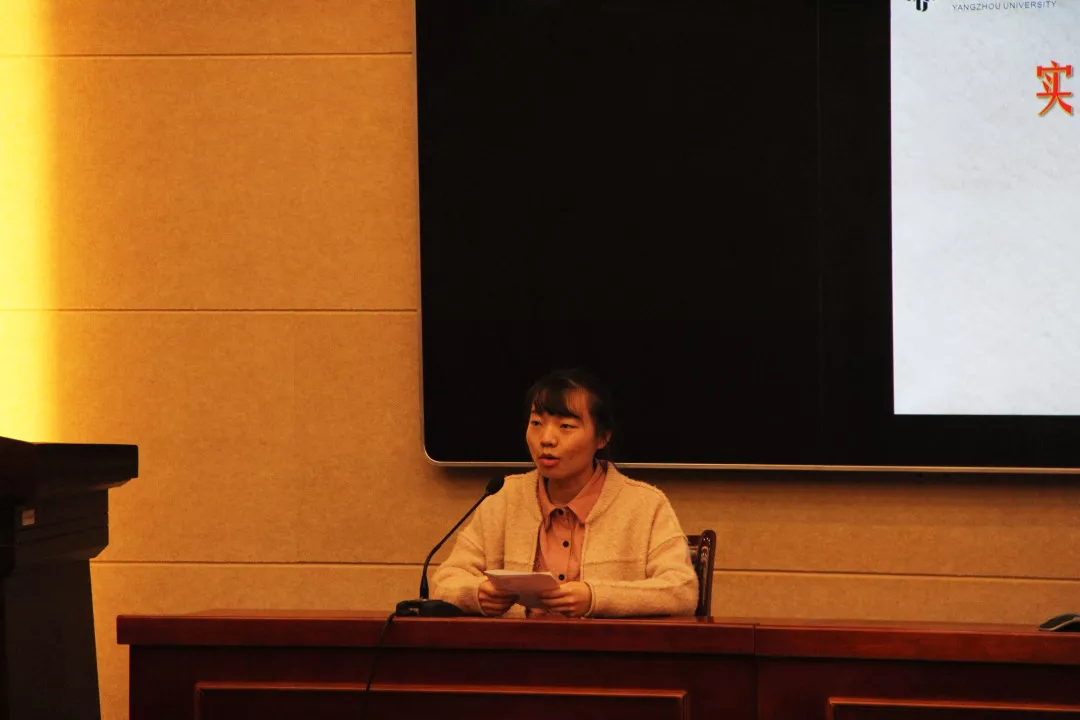 来自数学1501班的学生汤琳瑜分享了她在姜堰二中的实习经历。在教学实践方面,她总结道,上好习题课关键在于做好变式训练,作为实习老师,首先自己要做很多习题,要能够举一反三。另外,汤琳瑜分享到,课前试讲很重要,这是发现内容衔接、新课引入、时间分配等实际问题的良好时机。