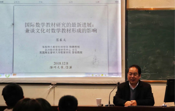 12月8日下午,我院于38号楼成功举办“国际数学教材研究的最新进展:兼谈文化对数学教材形成的影响”专题讲座,主讲人为华东师范大学数学科学学院范良火教授。范教授从教材方面为我院研究生学子开展了本场讲座。