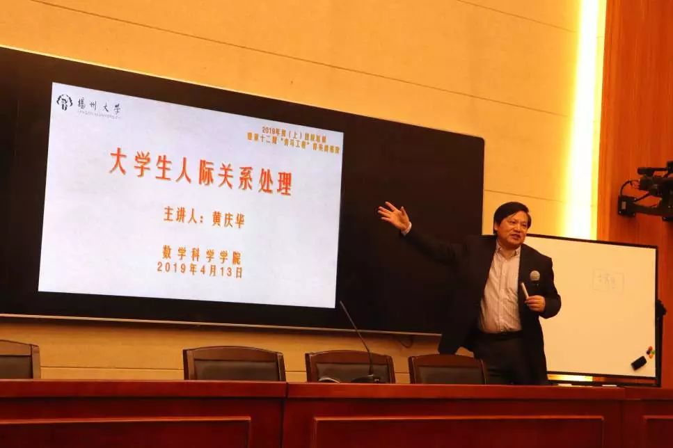 之后由黄庆华老师带来对大学生人际关系处理的独特见解。黄庆华老师从在座人物关系为切口,点出社会上人与人之间关系的复杂性,从而引出大学生人际关系处理的重要性。在讲解的过程中黄老师不时穿插时事新闻、真实例子帮助大家理解如何处理人际关系。