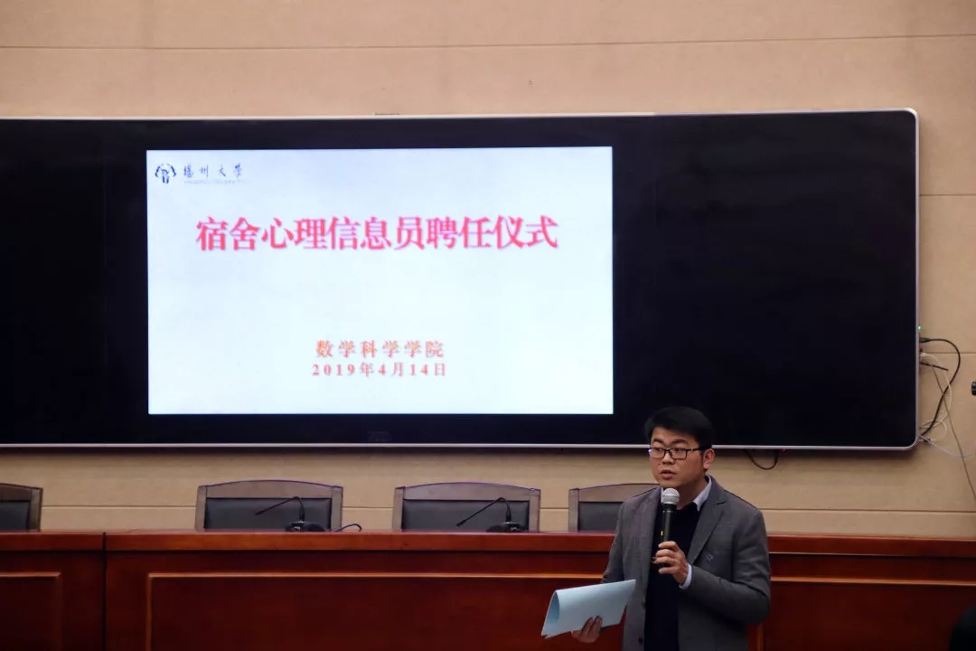 季老师在仪式上首先宣布,从今年开始,宿舍心理信息员的职位也将被纳入学生干部的范畴之中。学校重视大学生心理问题,并做出实际举措。宿舍心理信息员的工作融合了公寓生活与心理两个元素,成功将其合二为一。宿舍长不仅要负责宿舍安全,内务卫生,建设高雅的宿舍文化,还要加强危机干预,心理建设……这对于宿舍长是一种挑战,也是一种担当,更是作为师范生的一次很好的锻炼机会。当然对这份重担,学院也会适度得对优秀宿舍长进行加分,以此鼓励。