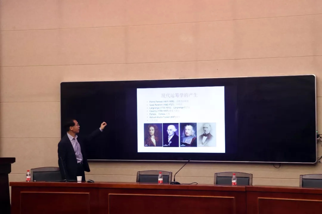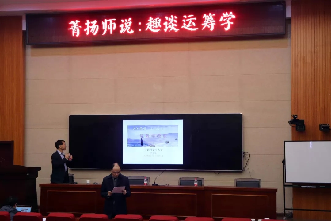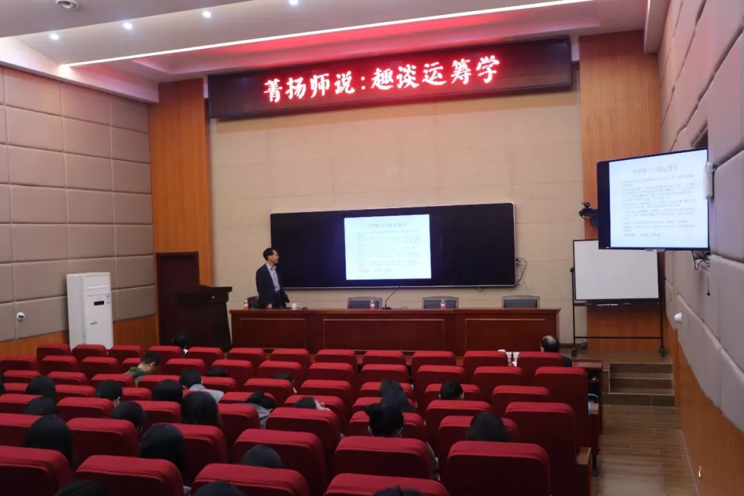 讲座伊始,郭田德老师开门见山,向同学们介绍了华罗庚及其对中国运筹学的影响。郭老师谈及自己在打麦场里的真实经历时,同学们的敬佩之情油然而发。随后,郭老师通过田忌赛马、丁谓挖街修皇宫、都江堰水利工程、“土木堡之变”之通州运粮、哥尼斯堡七桥问题和四色猜想等典型事例,向大家讲述了古今中外的著名运筹学思想。在场的同学们听得兴致满满,对运筹学的了解也更加深入。同时,郭老师还简单介绍了现代运筹学的产生及其分支,以及部分运筹学模型和运用。在讲座的最后,郭老师强调了运筹学的重要性,并表示运筹学无处不在,能助力其它学科的发展。