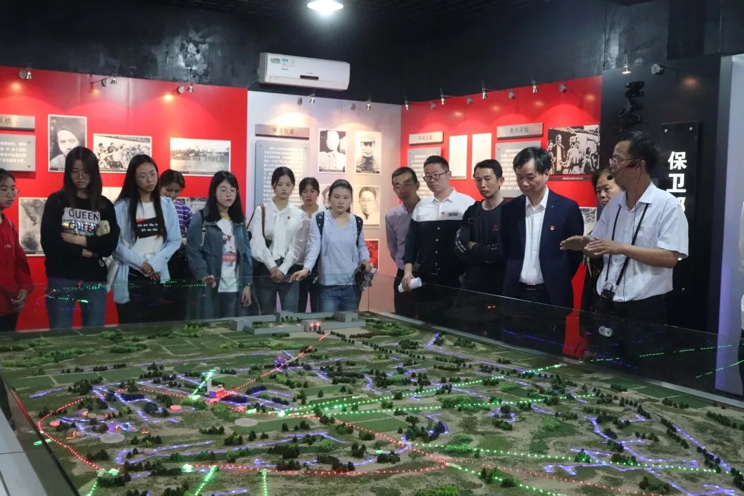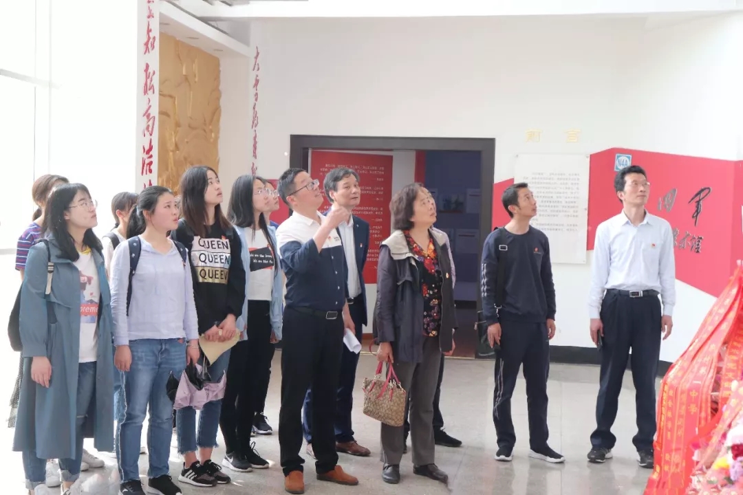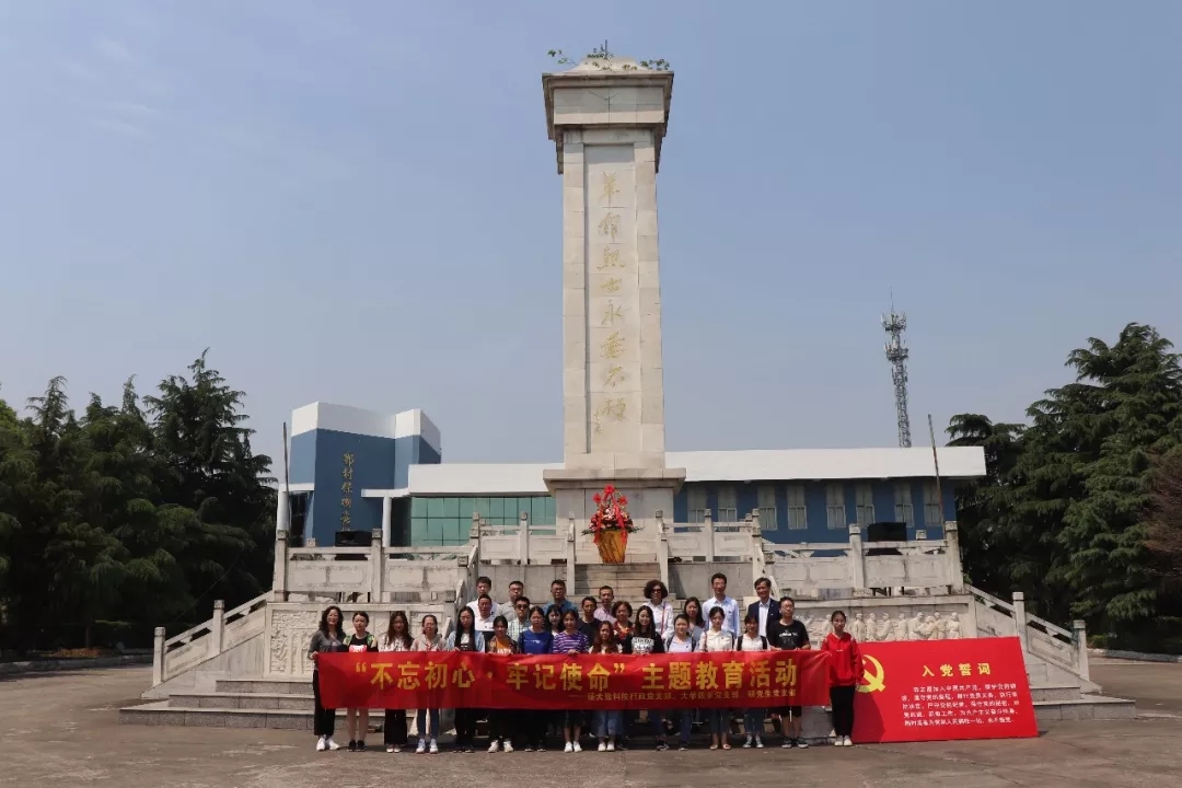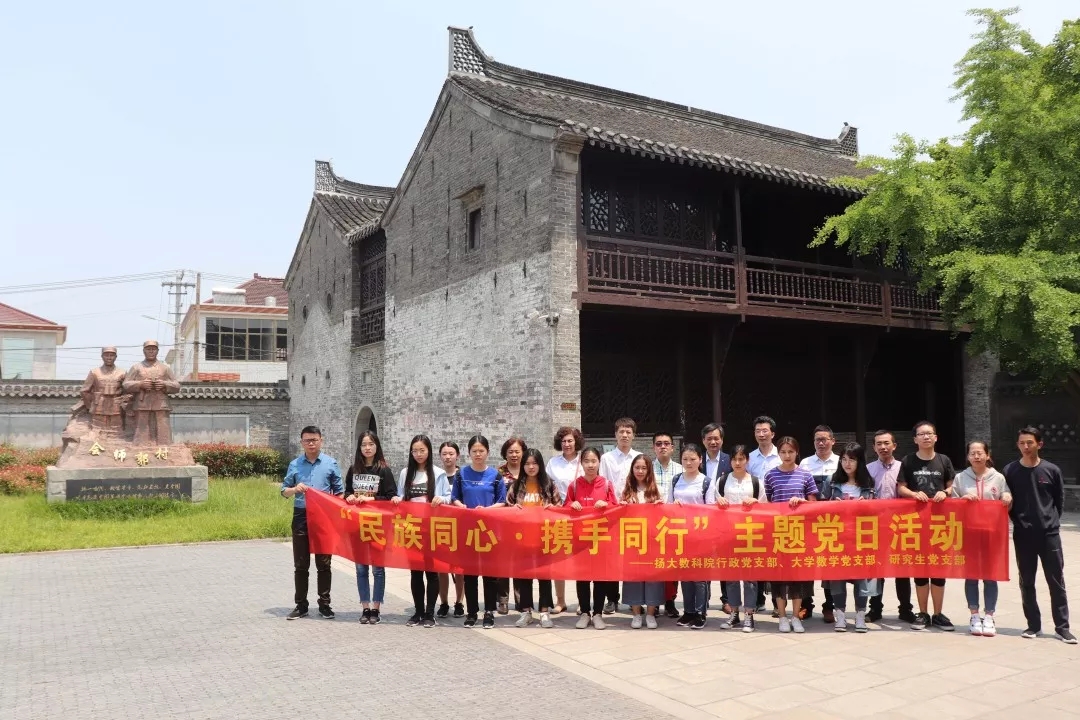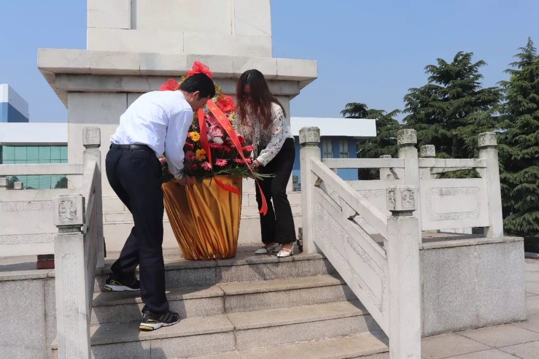会议结束后,参与主题活动的师生乘坐大巴来到“东进之源”——江都的郭村保卫战革命烈士陵园。在陵园革命烈士纪念碑前,师生共同向革命烈士敬献花篮。接着,朱鑫铨老师主持全体党员重温入党誓词。然后民族同胞们在馆长的带领下参观郭村保卫战纪念馆,聆听馆长讲解郭村保卫战的细节,重温抗战热血斗争。郭村保卫战揭开了新四军东进抗日的序幕,被誉为“东进序曲”而永载史册。