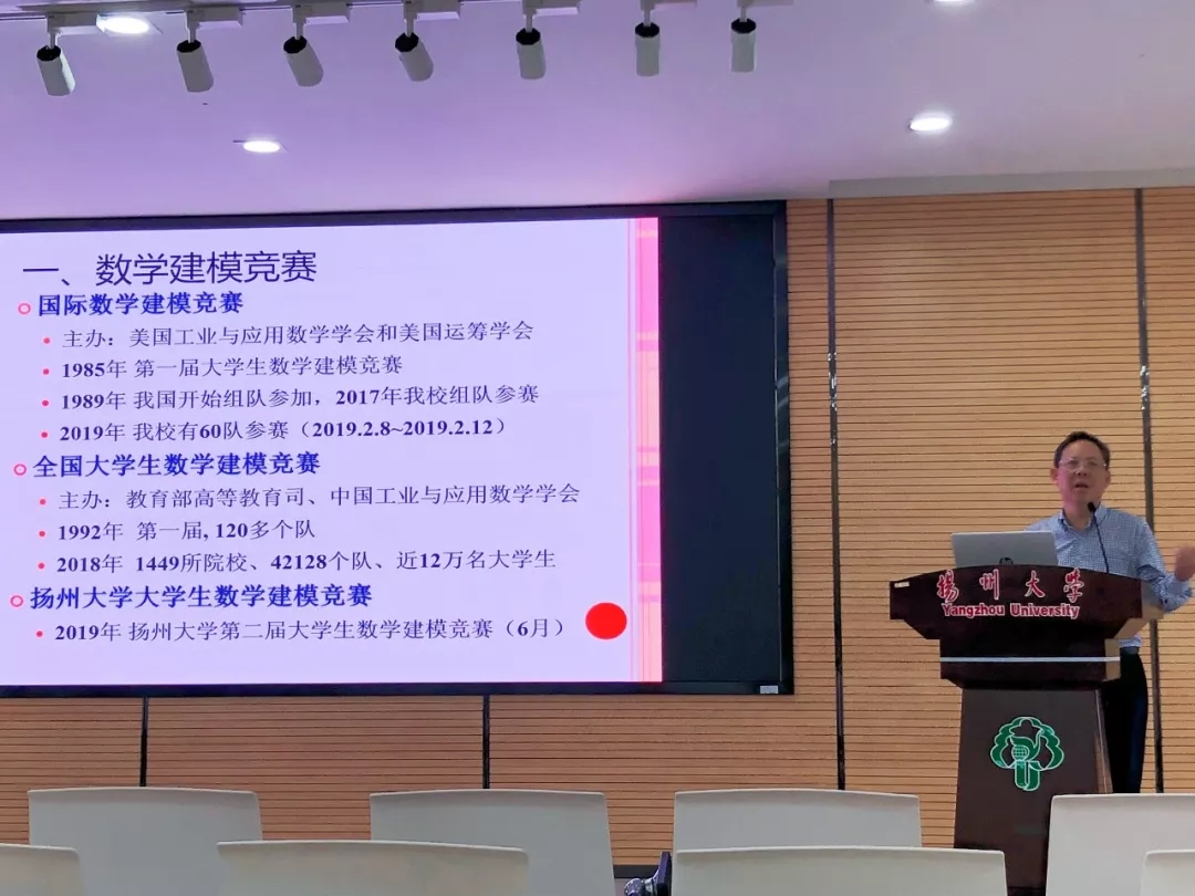 全国大学生数学建模竞赛创办于1992年,每年一届,目前已成为全国高校规模最大的基础性学科竞赛,也是世界上规模最大的数学建模竞赛。学院章山林老师向同学们介绍了数学建模竞赛的发展历程和学院往年获奖情况,分析了目前同学们参赛积极性不高的原因在于学院内部尚未形成数学建模竞赛的文化与氛围。章山林老师鼓励在座曾在校数学建模竞赛中获奖的学生积极参加国赛。