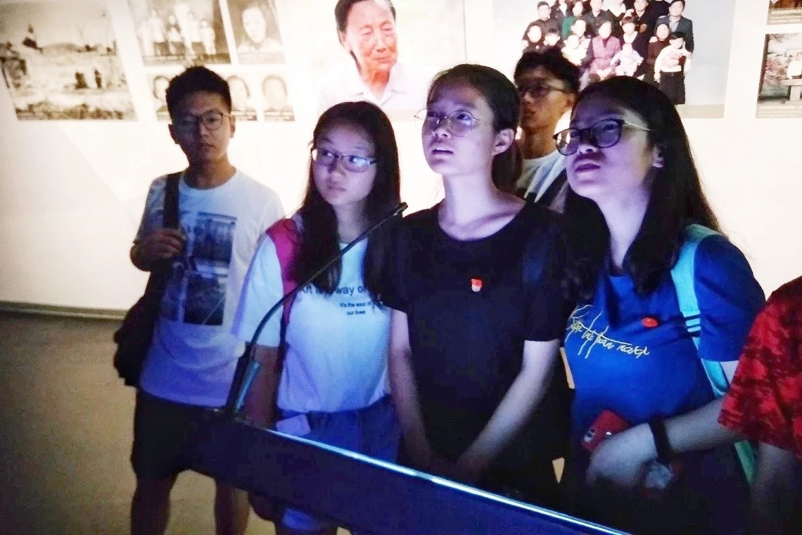 在交互式体验区,实践团队成员与一位幸存的老人进行了交流,了解了她的事迹,了解了她经历南京大屠杀的感受,不由让成员们的心头又增添了一份沉重。“前事不忘,后事之师”几个大字警醒着成员们要牢记历史,勿忘国耻,以史为鉴,面向未来。