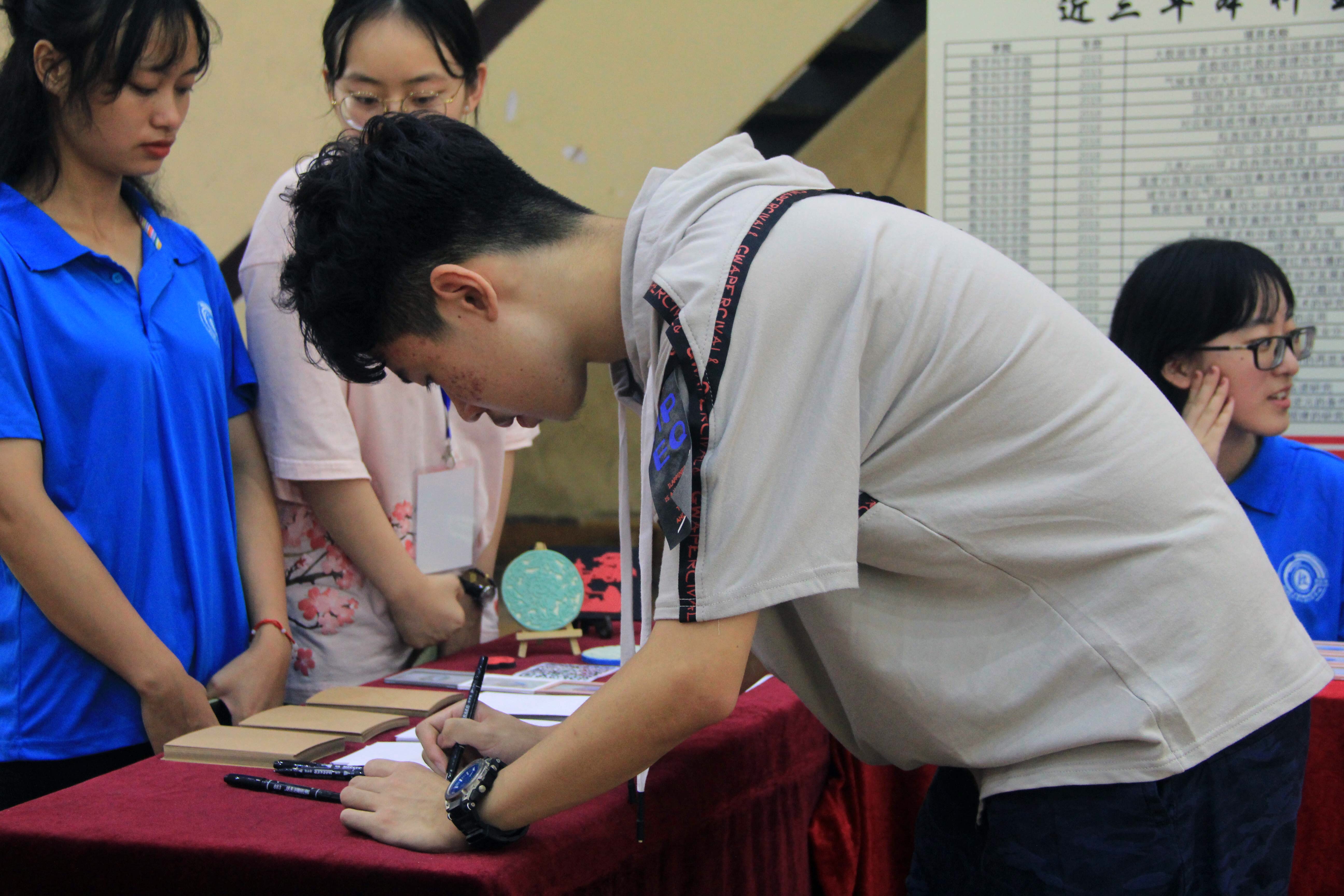 报道结束后,新生们在事先准备好的明信片上写下对未来四年的寄语,投入一旁的红色时光信箱中。此外,我院为新生们准备了一块巨大的展板,展板上写着录取通知书中数学题答案:“2019-2023”,寓意着新生在四年中成长、成才;展板前方是白色的“MATHE”标志,每位前来报道的新生都可以站在标志后留影纪念。