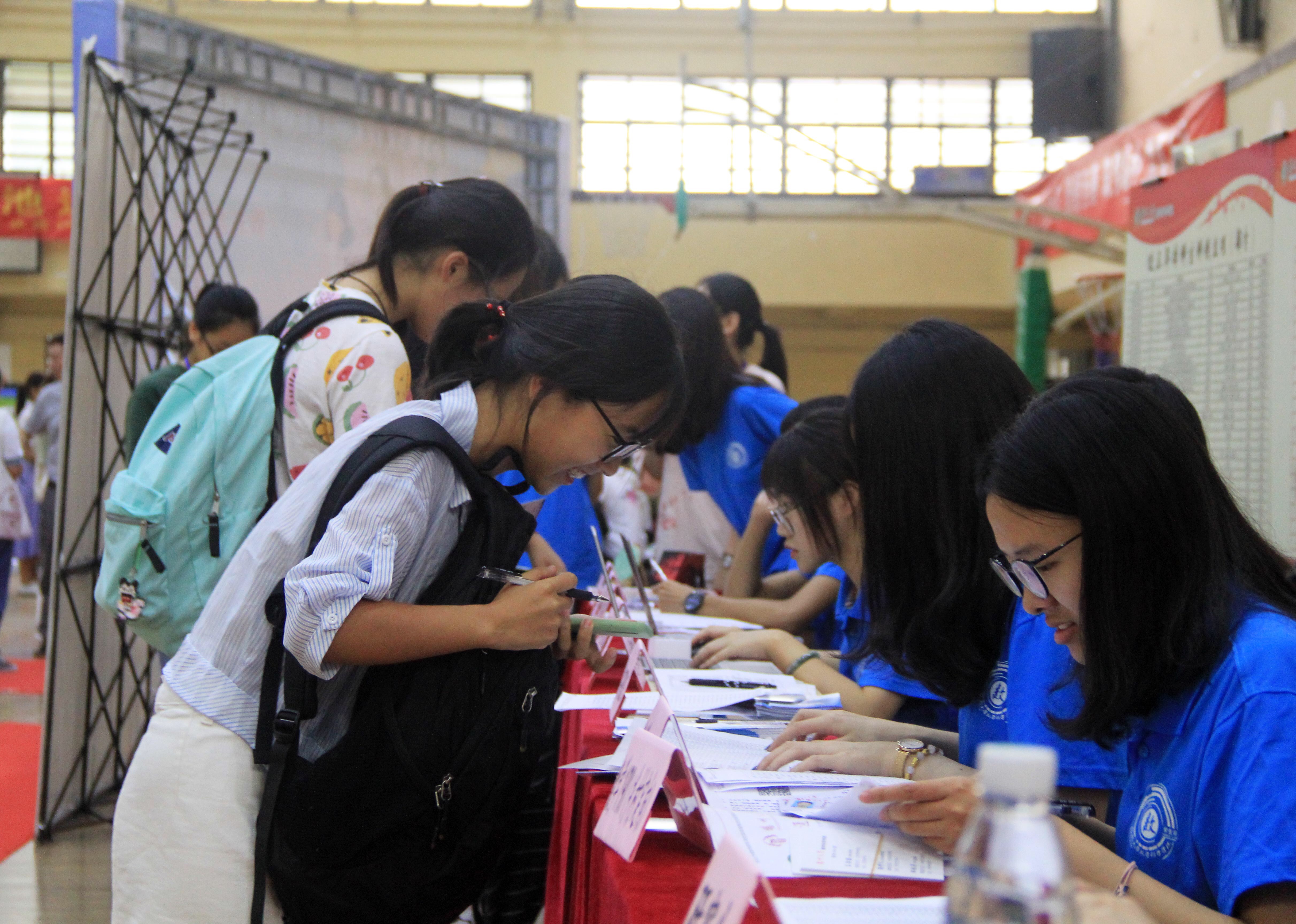 上午7时过后,已经有朝气蓬勃的2019级新生来到体育馆,新生们在成长伙伴的带领下,将录取通知书交给工作人员,并领取了校园卡、宿舍信息登记卡、教师信息卡片等物品。与去年的四季徽章不同,今年的新生小礼物是四色卡套,方便新生们保存校园卡。