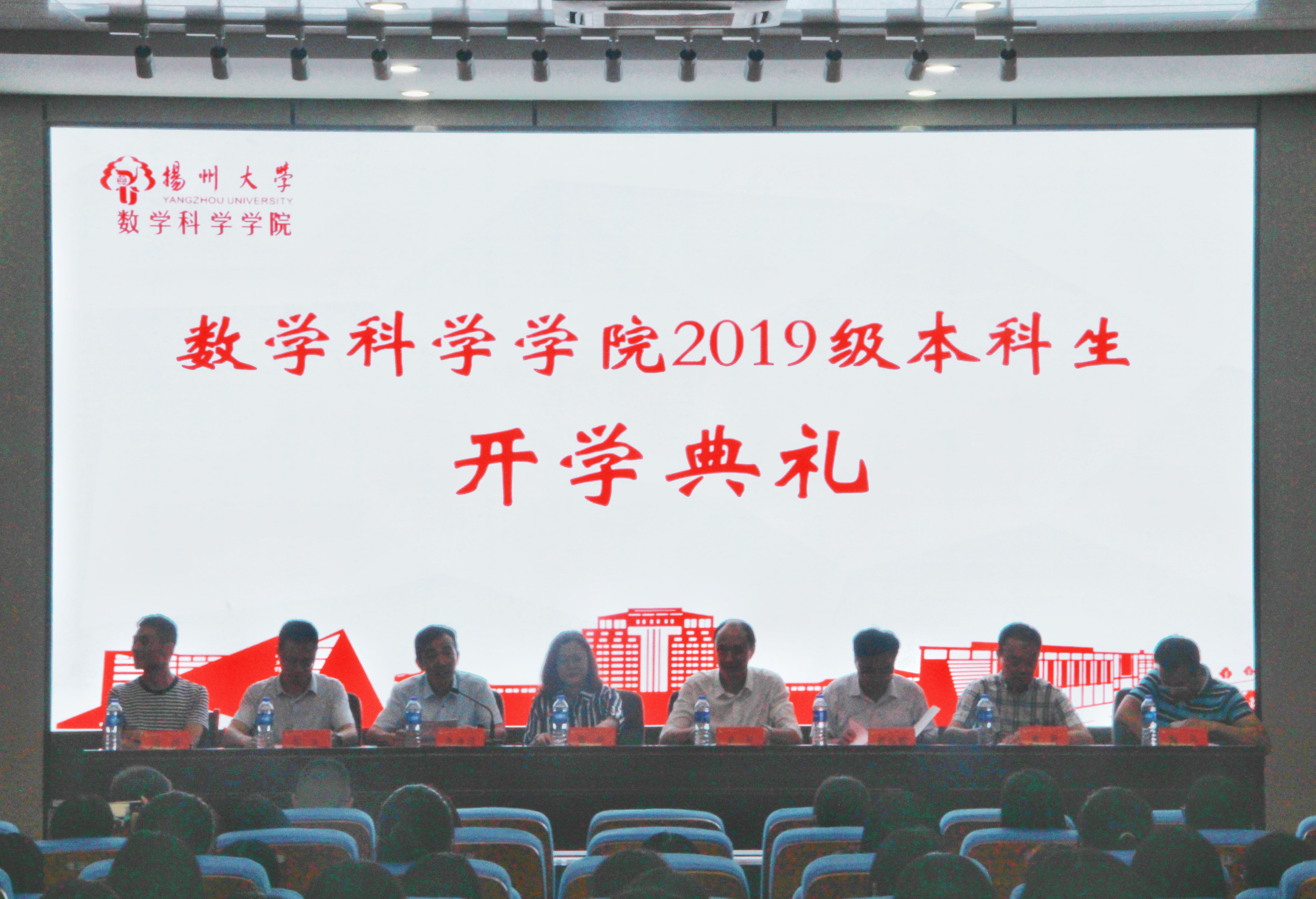 9月2晚,为欢迎2019级新生的到来,开启大学新篇章,我院隆重举行扬州大学数学科学学院2019级本科生开学典礼。我院院长凌智老师,党委书记郭丽老师,副院长黄强联、张来、黄勇老师,校友代表周鹏,教师代表曹锡芳、陈伟老师,以及全体2019新生出席本次典礼,典礼由党委副书记朱鑫铨老师主持。