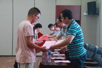第一项议程是为王乐媛、杜俊涛、李佳怡等优秀新生颁发奖学金,借此激励各位同学奋发向上,积极进取,为理想而努力。第二项议程是师生发言。首先院长凌智老师致辞,代表数科院全体师生欢迎229位新生来到数科院这个大家庭,并介绍我院历史、优秀校友以及我院海外交流等学术内容。凌智老师并为新生们送上四点建议:一是明德修身,学生应培养品德修养,大学期间不仅要感受瘦西湖校区的外在美,更要蕴养出心灵美;二是要充分发掘自身潜力,走稳、走好、走远大学路;三是珍惜大学生活,志存高远,做好大学规划,掌握安身立命的本领;四是将自身发展与国家前途命运结合起来,为国家、民族、社会奉献自己的一份力。教师代表陈伟教授借15级毕业生的考研、就业率点出我院对人才培养的重视程度,希望同学们把握住机会,在数学专业上建功立业。陈老师强调:若想获得荣誉,成为一个优秀的人,就应注重个人发展,树立理想,脚踏实地地学习。优秀校友周鹏通过自身留学时学习英语并成功教外国本科生数学的经历,用幽默风趣的语言激励同学们要好好读书,对自己有自信,更要勤奋拼搏,希望新生们不要在乎高考成绩,在大学里提升自我,并用习近平主席“幸福是奋斗出来的”的话提醒同学们挑战极限,实现梦想。