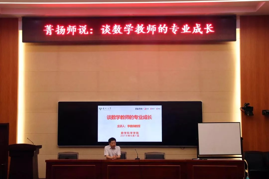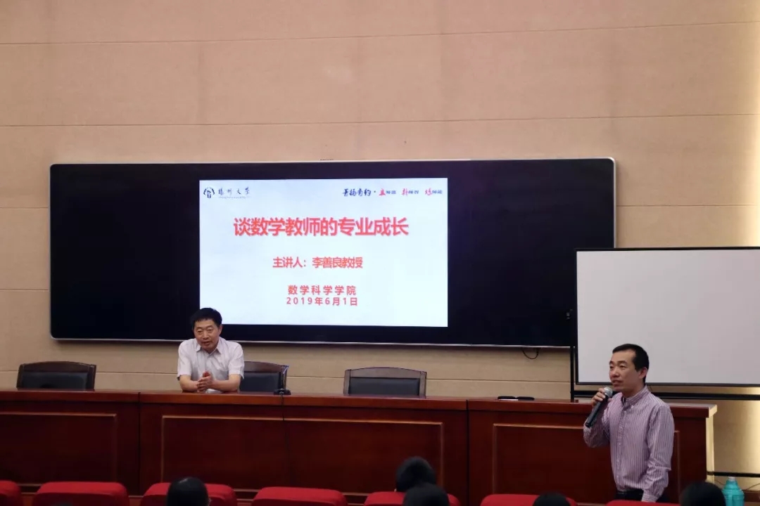 6月1日上午,我院邀请李善良教授于瘦西湖校区28号楼104学术报告厅进行了以“谈数学教师的专业成长”为主题的讲座。我院16级本科生和18级研究生参加了此次讲座。