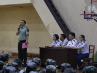 活动开始前,全体新生合唱强军战歌,展示了积极向上的精神风貌。活动首先由扬州市消防支队张建军政委发言,他向新生们提出对于安全常识的基本要求,强调了了解消防安全的重要性。紧接着,陈玉明所长从辖区内消防安全事件讲起,多方面举例,警醒同学们注意网络安全、贷款、诈骗、套路贷等,并通过互动的形式向同学们普及新型诈骗手段,传授如何防范诈骗和受骗后的解决措施。