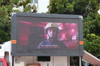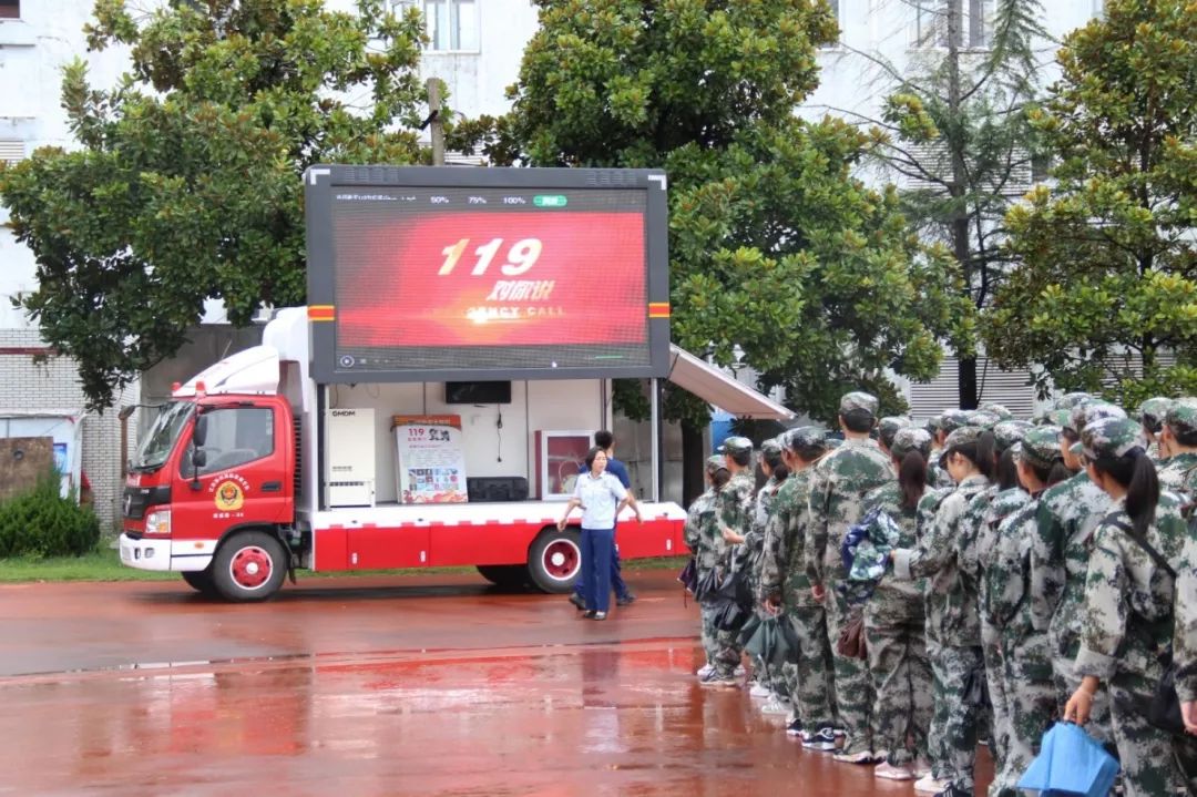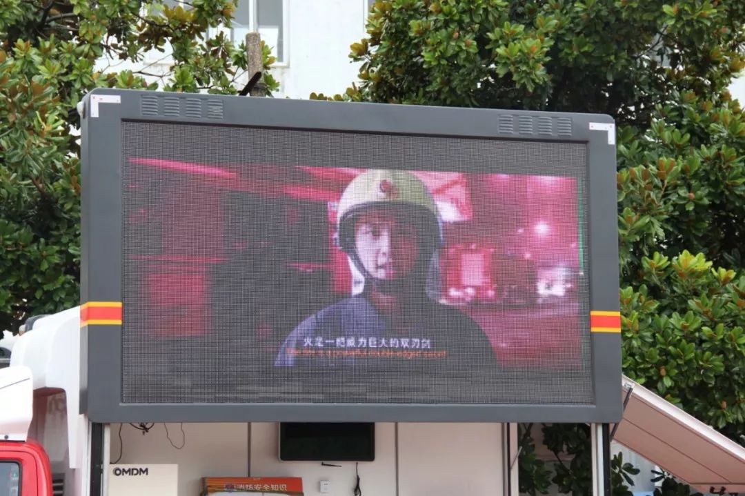 活动最后,所有新生前往田径场,观看消防支队制作的宣传视频《火警扬安民》,进一步了解消防安全常识。