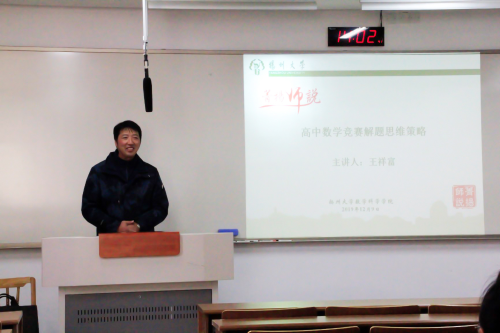 为帮助师范生提高专业兴趣,做好职业认知,并激发钻研精神,数学科学学院于12月9日下午开展了主题为“高中数学竞赛解题思维策略”的报告会,以分享高中数学竞赛的形式加强师范生对高中数学知识的了解。本次主讲人为中学数学高级教师王祥富老师。