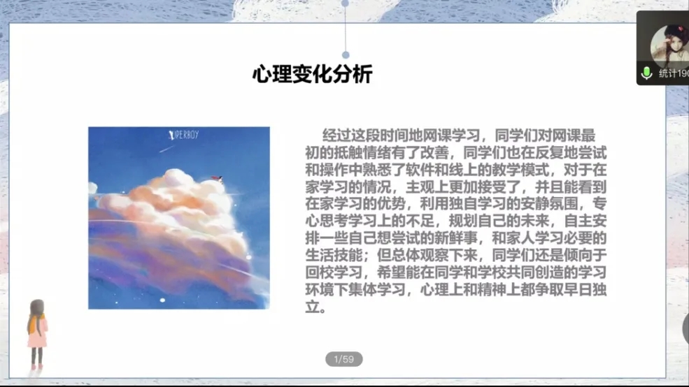 首先,数学1901的周涓深入分析了线上学习中出现的问题——学习无动力、注意力不集中、任务积压等,从而警醒懒惰学习的学生,并给予了一些个人建议。周涓介绍了一个课前课时课后“三步法”:课前要调整好心态、建立仪式感,课时要切断外界干扰,课后要注重整理、交替学习和适当自我奖励。
