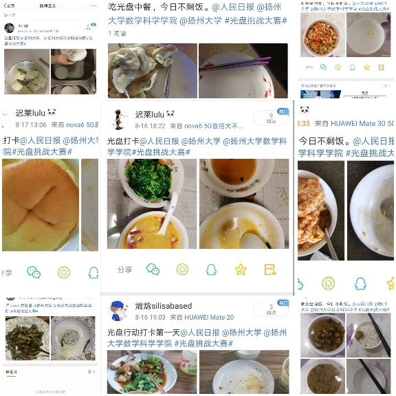“自总书记对餐饮浪费行为做出重要指示后,我院便立刻成立社会实践团队,对餐饮浪费行为进行问卷调查。调查发现做到每日光盘的人数只有37%。此外,面子问题、顾客食量与餐厅食物分量的差距以及第二份半价等优惠活动,是产生浪费现象的主要原因。”团队成员袁依娜告诉记者。“争做光盘人”实践团队为引导广大群众历行勤俭节约,反对铺张浪费,重视粮食安全,通过手写承诺书、拍摄视频宣传、微博参与“光盘挑战大赛”、微信小程序参与光盘打卡、QQ群分享光盘照片等方式积极呼吁广大市民践行光盘行动,活动一经开展,反响热烈。