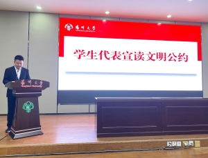 院党委副书记朱鑫铨老师在本次活动中发表讲话。朱老师表示,基础文明建设对全面提高大学生综合素质、建设文明高雅和谐校园文化起着至关重要的作用。广大学生应时刻牢记和遵循社会主义核心价值观,争做社会主义核心价值观的积极传播者、坚守信仰者、忠实践行者,引导广大学生把社会主义核心价值观融入日常,日用而不觉。广大学生应继承中华民族传统美德,坚持知行合一,将良好行为习惯和文明修身自觉内化于心,外化于行,变成个人自觉的行动和对美好生活的追求,推动校园文明建设。