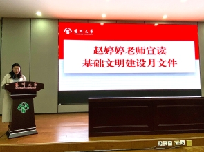 活动开始前,全体学生观看了基础文明建设月的宣传视频。据了解,该视频由我院各班学生录制而成。视频中,每位同学呼吁“争做文明使者,践行文明公约”并进行宣誓。