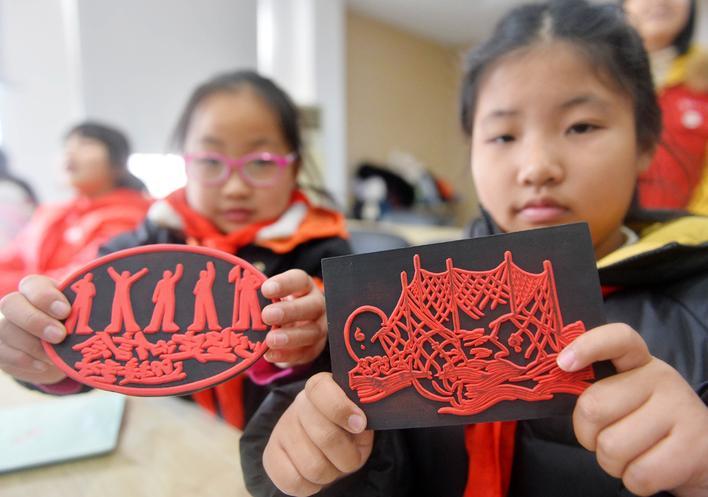 “老师,除了扬州的美景,我还想把扬州的美食也刻在橡皮上。”“老师,这块橡皮章还可以做装饰,我想把它送给我外地的朋友。”拿着刚刚制作的成品,孩子们高兴地说。