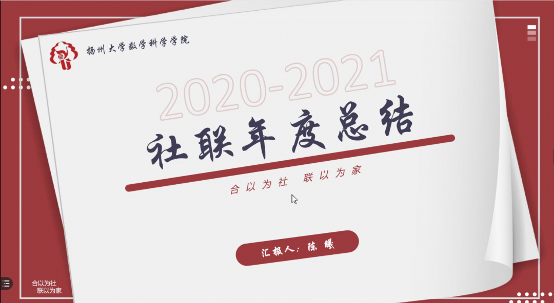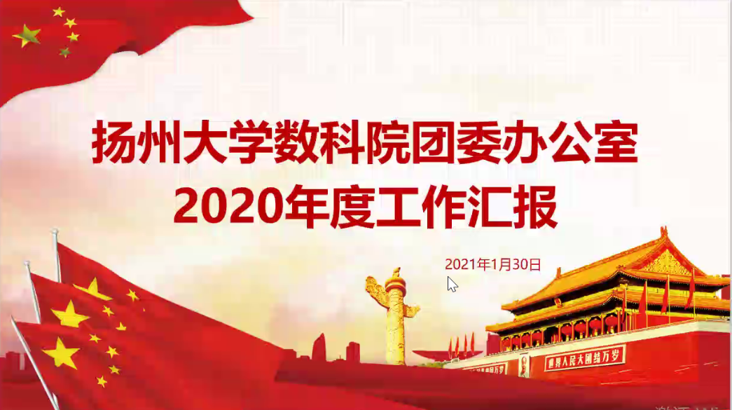 为总结我院学生干部工作成果,提高我院学生组织运营效率,1月30日下午,我院举办2020-2021学年秋学期学生组织述职大会。本次大会于腾讯会议线上平台开展,院团委副书记季中亚老师、辅导员潘伊人老师、辅导员赵婷婷老师及四大学生组织全体成员共同参会。