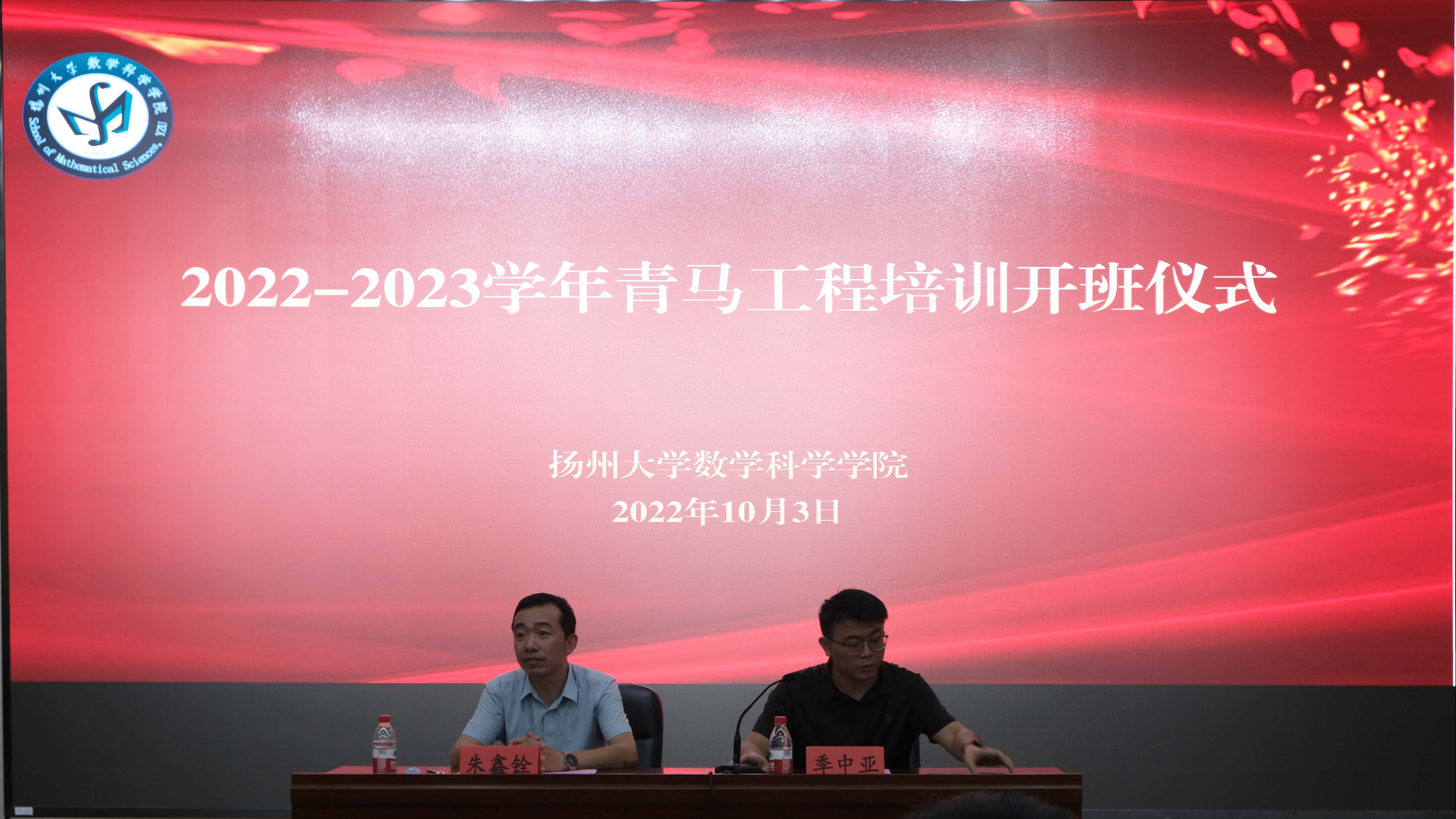 为加强对学生干部的思想政治引领,增强学生干部的综合素质,我院于10月3日下午在瘦西湖校区举行“青马工程”培训开班仪式。本次会议由我院团委副书记季中亚老师主持,院党委副书记朱鑫铨老师、全体辅导员老师和全体学生干部参会。