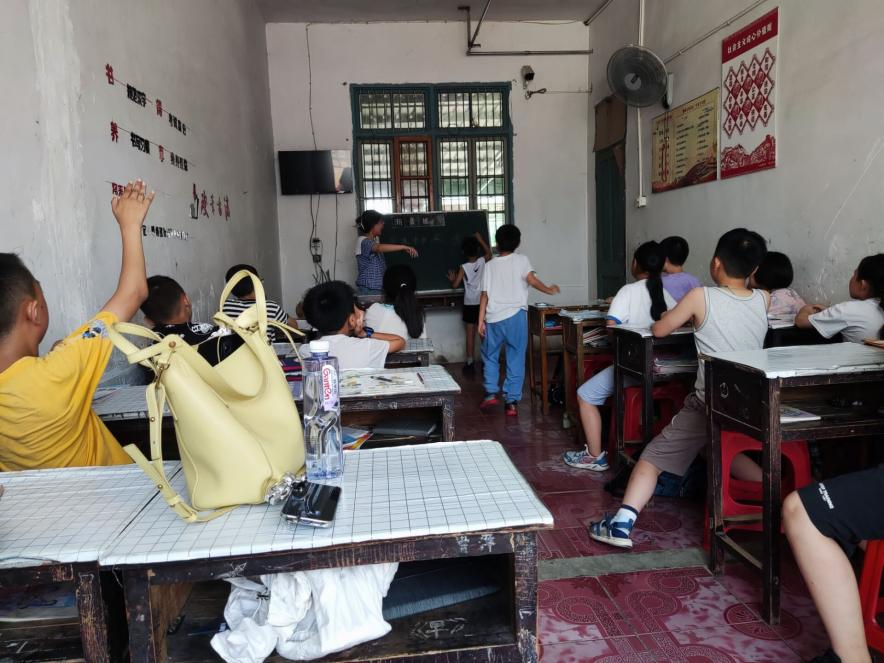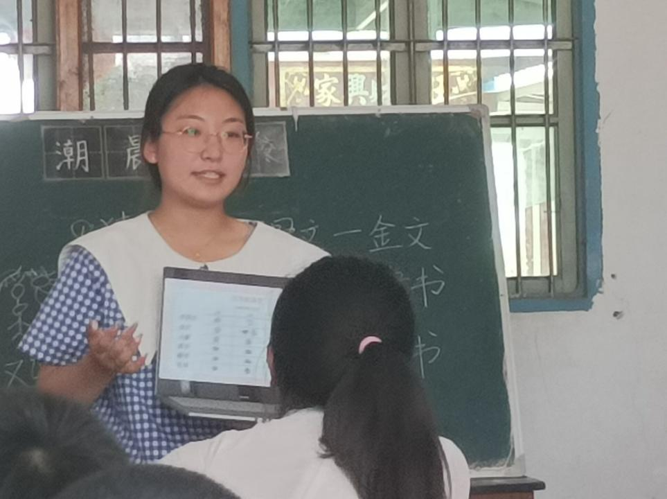 在支教过程中,志愿者们感受到孩子对知识的渴望,对教师的崇敬。团队成员朱真宁作为第一位讲课人,她的两节课分为四个部分。第一部分猜一猜,通过猜测甲骨文代表着哪些现代汉字,让小朋友们对文字起源以及“书画同源”有了更加深刻的理解。第二部分是添一添,通过添一笔让原来的字变为全然不同的新字,让他们感受中华文化的千变万化。第三部分是说一说,让他们在词、句中感受字的意思。第四部分是读一读,让大家了解到诗句的温度。
