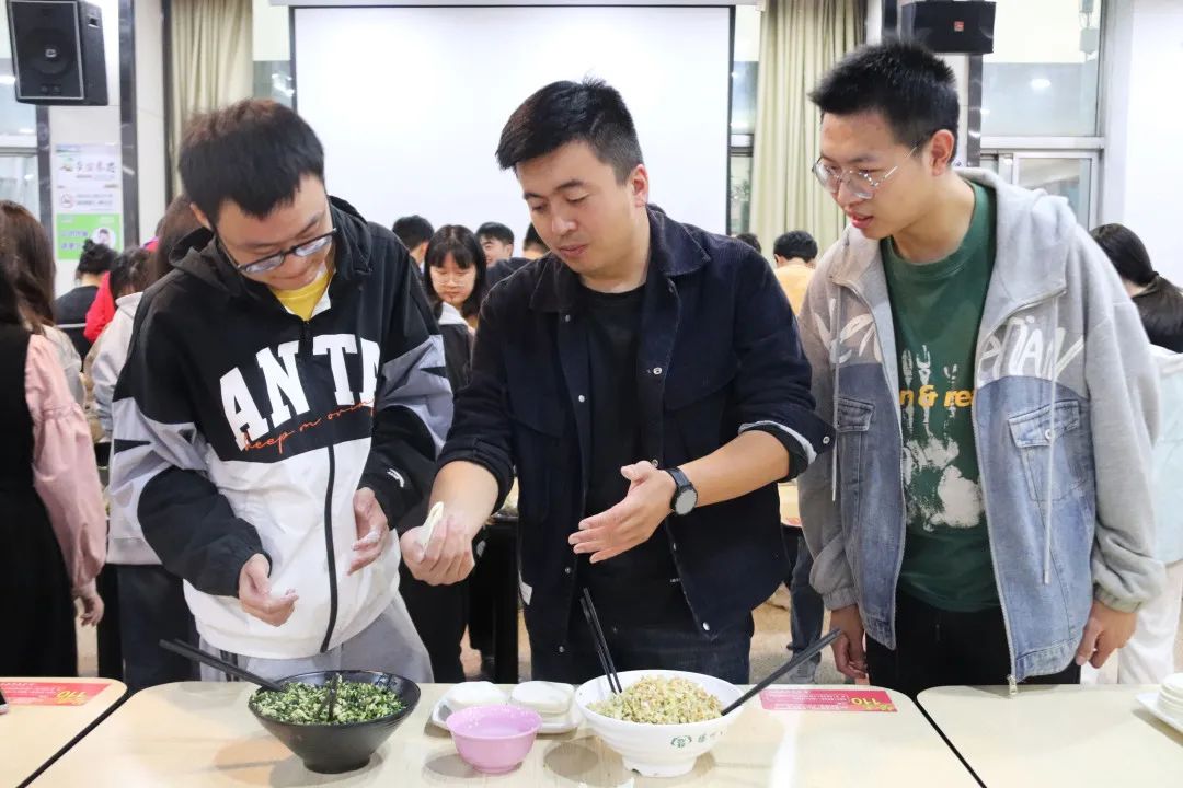 王兆珠老师、王星茗老师手把手地向同学们示范包饺子过程,同学们积极参与其中,一边包饺子,一边和老教师们扯着家常,同学们关心询问老教师们身体情况,聆听老教师们年轻时的事迹……为老教师们送上节日的关怀。饺子下锅,出“炉”以后,同学和老师们一同品尝了亲手制作的饺子,现场氛围其乐融融。
