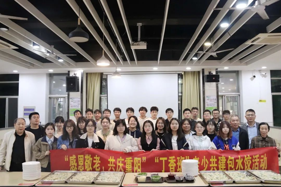 为弘扬爱老敬老的传统美德,10月23日下午,我院组织学生开展“感恩敬老,共庆重阳”——“丁香班”老少共建包水饺活动,关工委詹玉铸老师、王兆珠老师、朱家生老师、院团委书记季中亚老师、辅导员王星茗老师以及第四届“丁香班”——统计2201全体同学参加。
