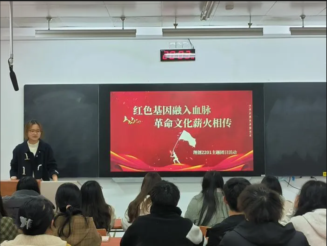 为强化政治理论引领,筑牢青年学生思想根基。我院理创2201响应号召,于3月27日在教学楼S113开展“红色基因融入血脉,革命文化薪火相传”主题团日活动,引导班级同学深刻感悟新时代党和国家事业发展的伟大成就。本次活动主要分为三个部分。