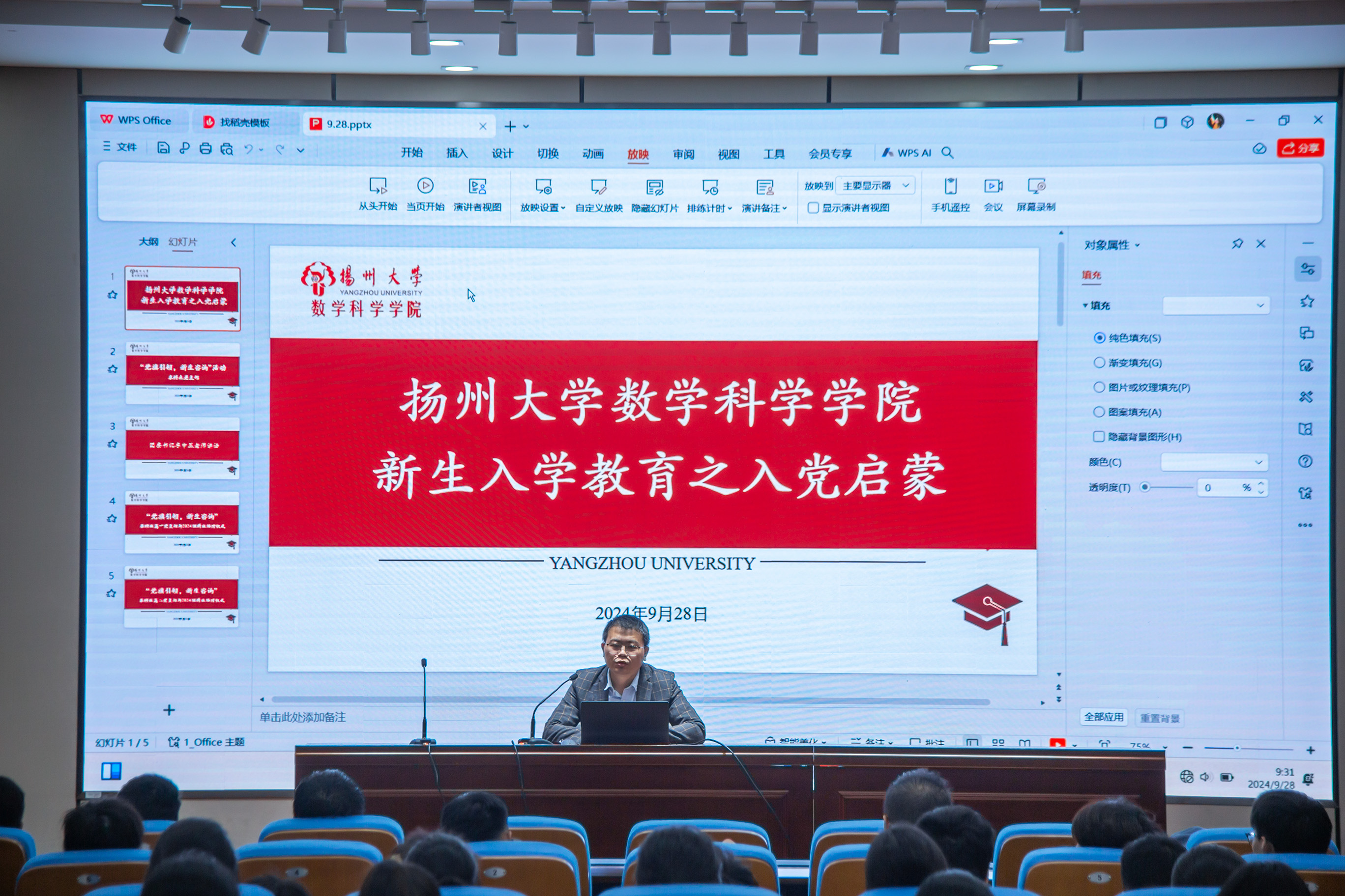 为引导广大新生树立正确的政治信仰,端正入党动机,9月28日上午,我院在8号楼S405举办2024级新生入党启蒙教育讲座。本次讲座由院办公室副主任焦晏如老师主讲,团委书记季中亚老师、辅导员张超老师和2024级全体本科生参加讲座。