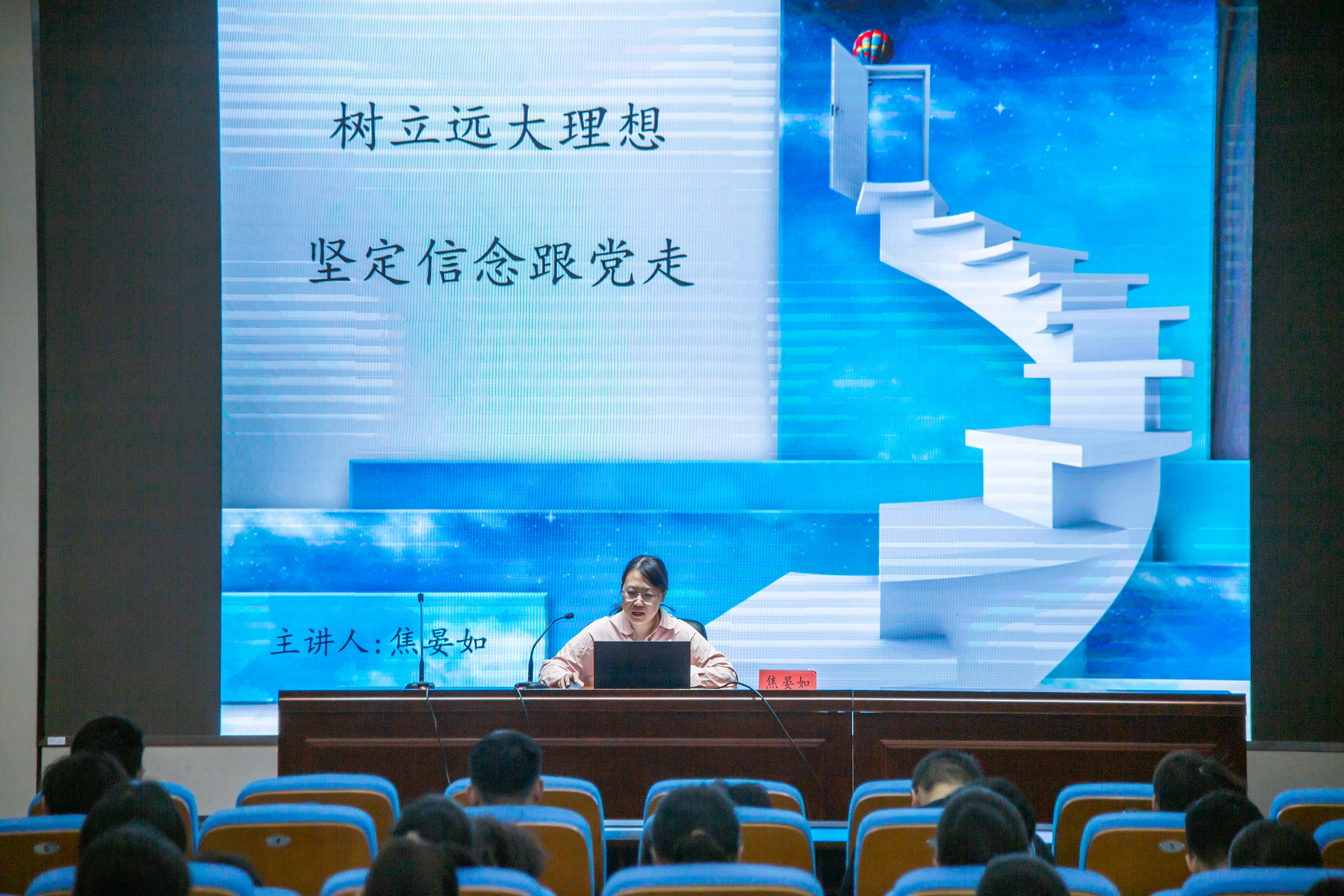 焦晏如老师以“树立远大理想,坚定信念跟党走”为题,从青年人为什么要树立远大理想,中国共产党的伟大理想,青年大学生应树立远大理想、坚定信念三部分进行阐释,详细介绍红色故事、红色思想和入党章程,呼吁学生们向历史和身边优秀的党员学习。季中亚老师结合案例分析大学生常见的思想误区,敦促广大同学树立正确的理想信念,端正入党动机,同时对在场的新生班委们提出要求。