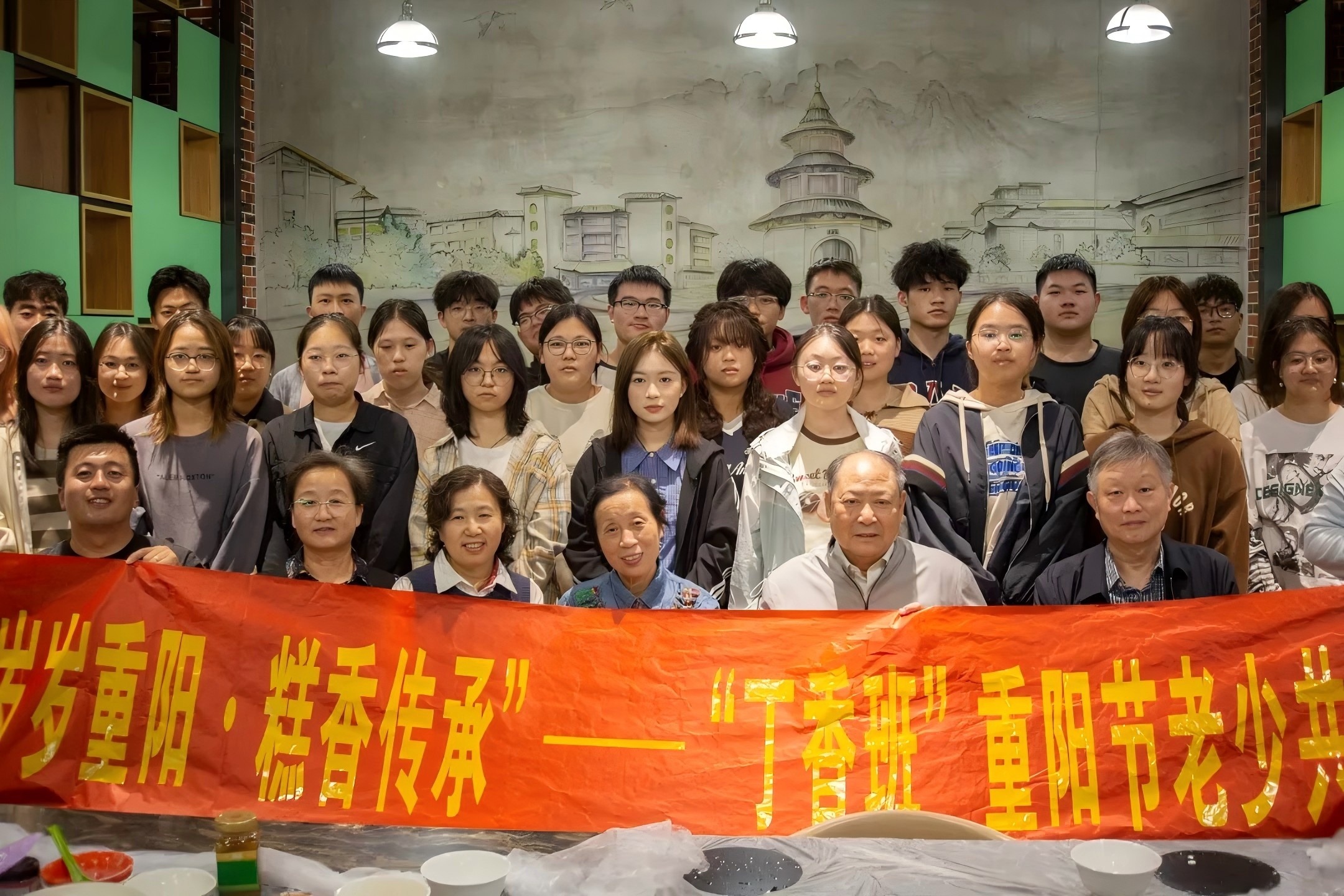 带着对亲人重重的思念和久远的牵挂,10月11日下午,我院组织开展“岁岁重阳.糕香传承—“丁香班”重阳节老少共建”活动,关工委詹玉铸老师、王兆珠老师、 朱家生老师、张国林老师、包骁斌老师、赵爱军老师、辅导员王星茗老师以及第四届“丁香班”——统计2201全体同学参加。