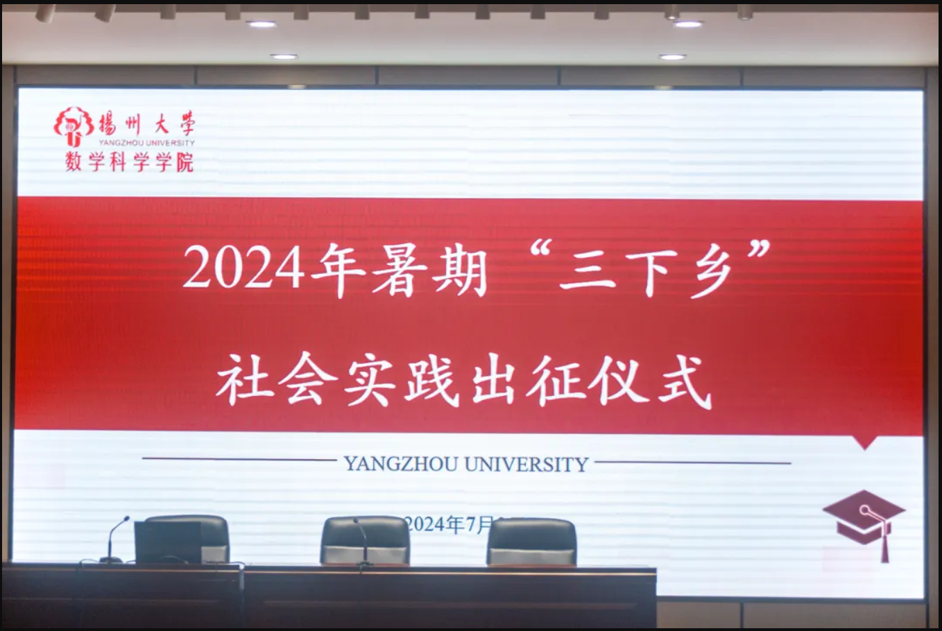 习近平总书记关于青年工作的重要思想,引领广大青年学子积极投身社会实践,在社会课堂中“受教育、长才干、作贡献”,7月3日下午,我院举办暑期“三下乡”社会实践出征仪式。本次活动由辅导员顾妍老师主持,院党委副书记高延安老师、团委书记季中亚老师,辅导员张超老师及我院全体社会实践团队代表参会。