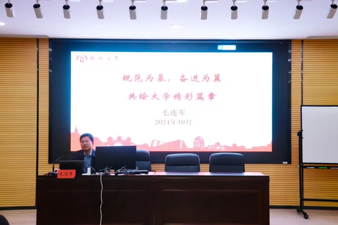 为进一步强化新生规范意识,明确大学奖惩机制,助力更快适应大学生活,近日,校学生工作部(处)副部(处)长毛连军老师为我院新生作“规范为基,奋进为翼,共绘大学精彩篇章”入学教育讲座。我院党委副书记高延安老师、院团委书记季中亚老师以及全体2024级新生参会。