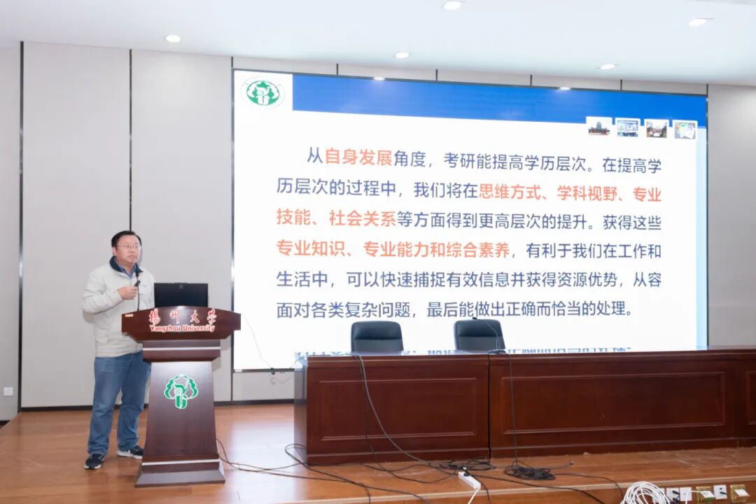 周锋老师和黄健飞老师分别就考研重要性、学院近年考研情况及备考策略进行讲解,强调考研对个人发展和社会进步的意义,并分享成功案例与实用建议。周锋老师提到:“考研是知识、意志与自我极限的挑战,虽艰辛但能带来成长与收获。学院历年有许多学生考入国内外知名高校,证明通过努力可实现目标。” 希望同学们考研需坚定信念、顽强毅力,并注重专业知识积累与实践能力提升。