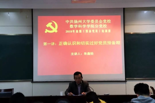 随后季中亚老师宣读《关于举办数学科学学院分党校2018年秋(预备党员)高安排等。接着学院党委副书记 、分党校副校长朱鑫铨老师就“如何正确认识和切实度过党员预备期”为主题发表了讲话 ,要求党校学生有慎独的人生态度,在思想和行为两方面规范自身。朱老师以自身经历为例,鼓励党员承担党员责任,以党员标准约束、提升自己,勇于奉献,为人民服务。
