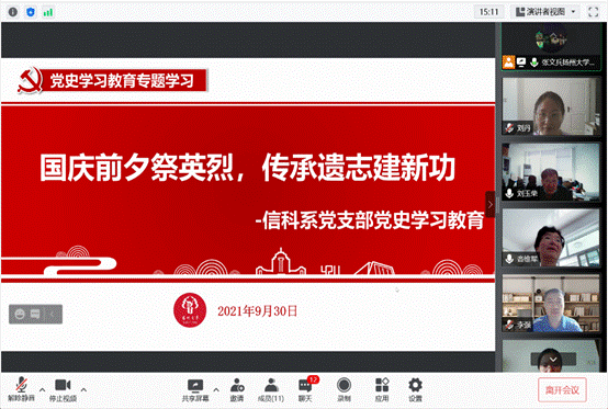 为缅怀革命先烈,继承先辈遗志,更好地传承和发扬英雄精神,我院党委在9月30日烈士纪念日组织全体师生开展“国庆前夕祭英烈,传承遗志建新功” 线上主题党日活动。学院各党、团支部组织师生观看了习近平等党和国家领导人出席烈士纪念日向人民英雄敬献花篮仪式的实况转播,并进行了"传承遗志建新功"的主题讨论。