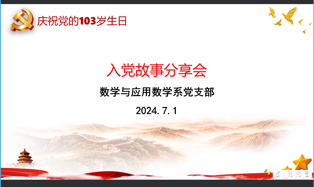 7月1日,数学科学学院党委组织系列主题活动热烈庆祝中国共产党成立103周年。