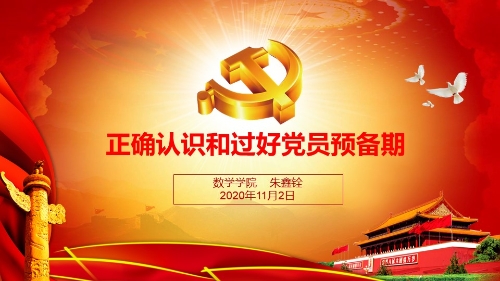 为加强预备党员对自身职责以及党的认识,数学科学学院于11月2日下午邀请院党委副书记朱鑫铨老师开展主题为“正确认识和过好党员预备期”的线上培训会议。