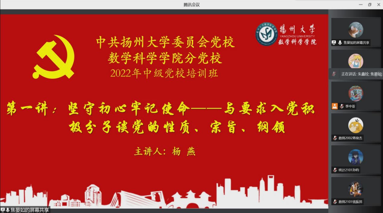 5月2日至5月15日,数学科学学院2022年度中级培训班正式开课,入党积极分子齐聚云端,怀揣着对党的崇高信仰,共同深入学习党的理论知识和宝贵精神。
