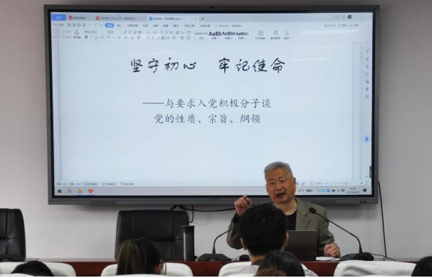 开班典礼结束后,校关工委理论宣讲团顾瑞漒教授讲授培训班课程第一讲,题为“坚守初心牢记使命——与要求入党积极分子谈党的性质、宗旨、纲领”的专题报告,从五个方面,回顾中国共产党百年历程,强调了学习贯彻党的二十大精神的意义。院团委副书记季中亚从我为什么入党—从递交入党申请书开始谈起,强调入党积极分子需要“吾日三省吾身”,摆正入党动机,接受组织和群众的考察监督。校关工委严公宝教授作“补足精神信仰之钙,实现中华民族伟大复兴”的专题报告,指出大学生应该坚定理想信念,推进中华民族伟大复兴早日实现。马克思主义学院吴林斌副教授以“以内化于心学习党章,外化于行严守党章”为题,督促学员贯彻党章的精神,坚决维护党的章程。